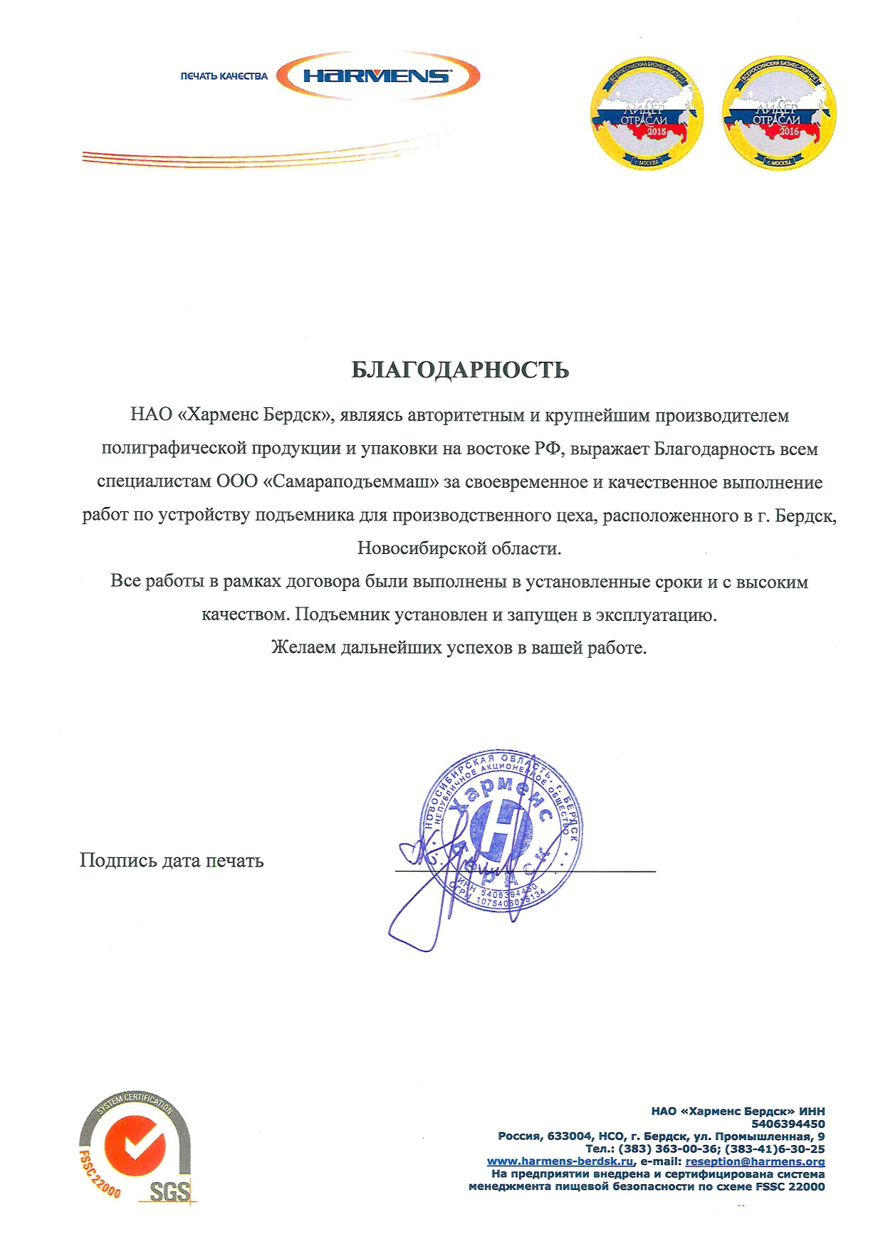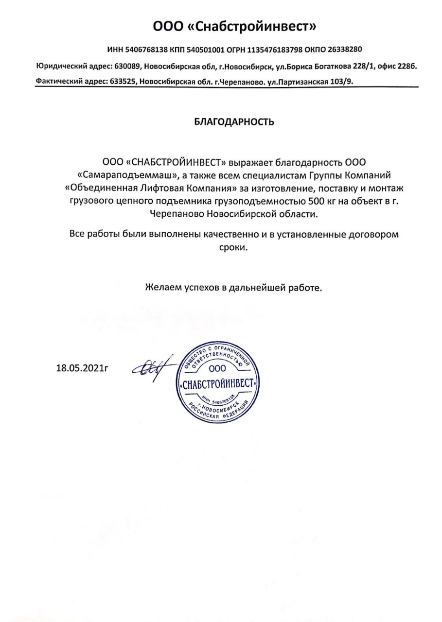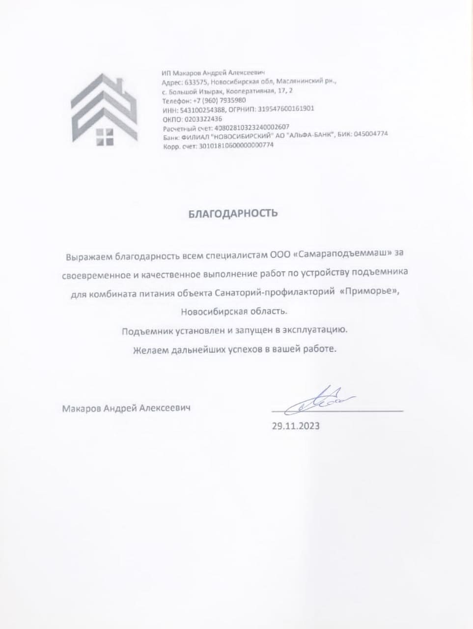 Все работы выполнены в установленные и согласованные сроки, подъемник изготовлен, смонтирован и принят в эксплуатацию.